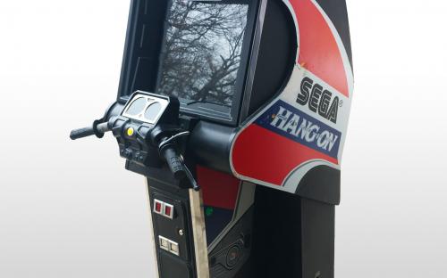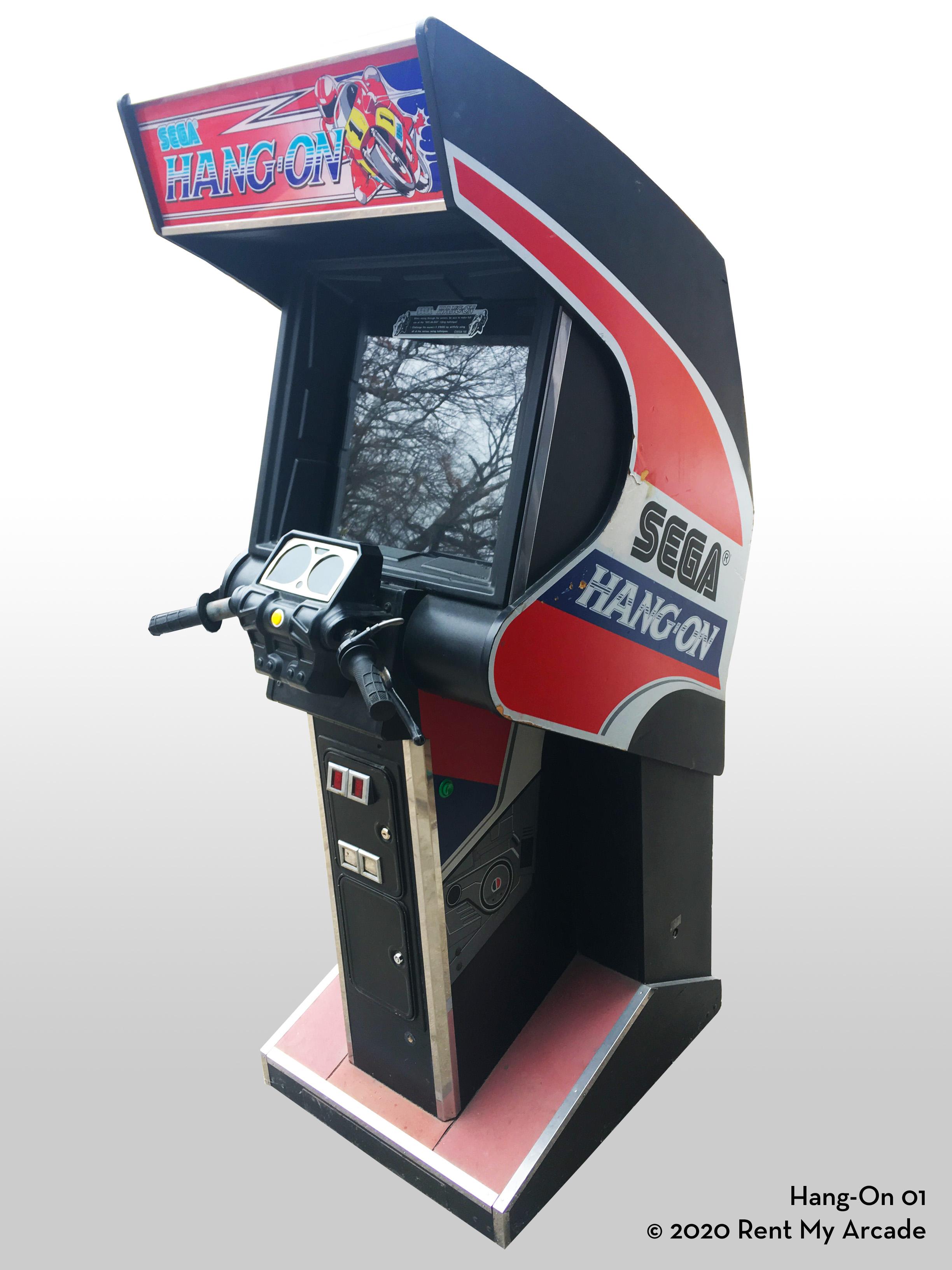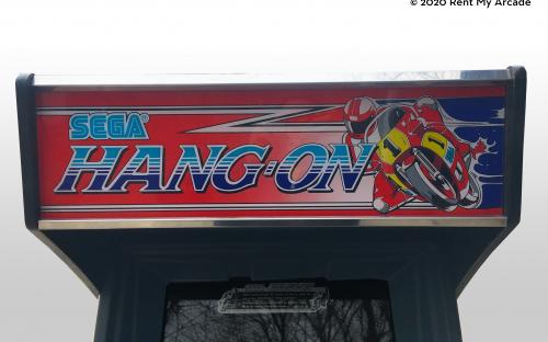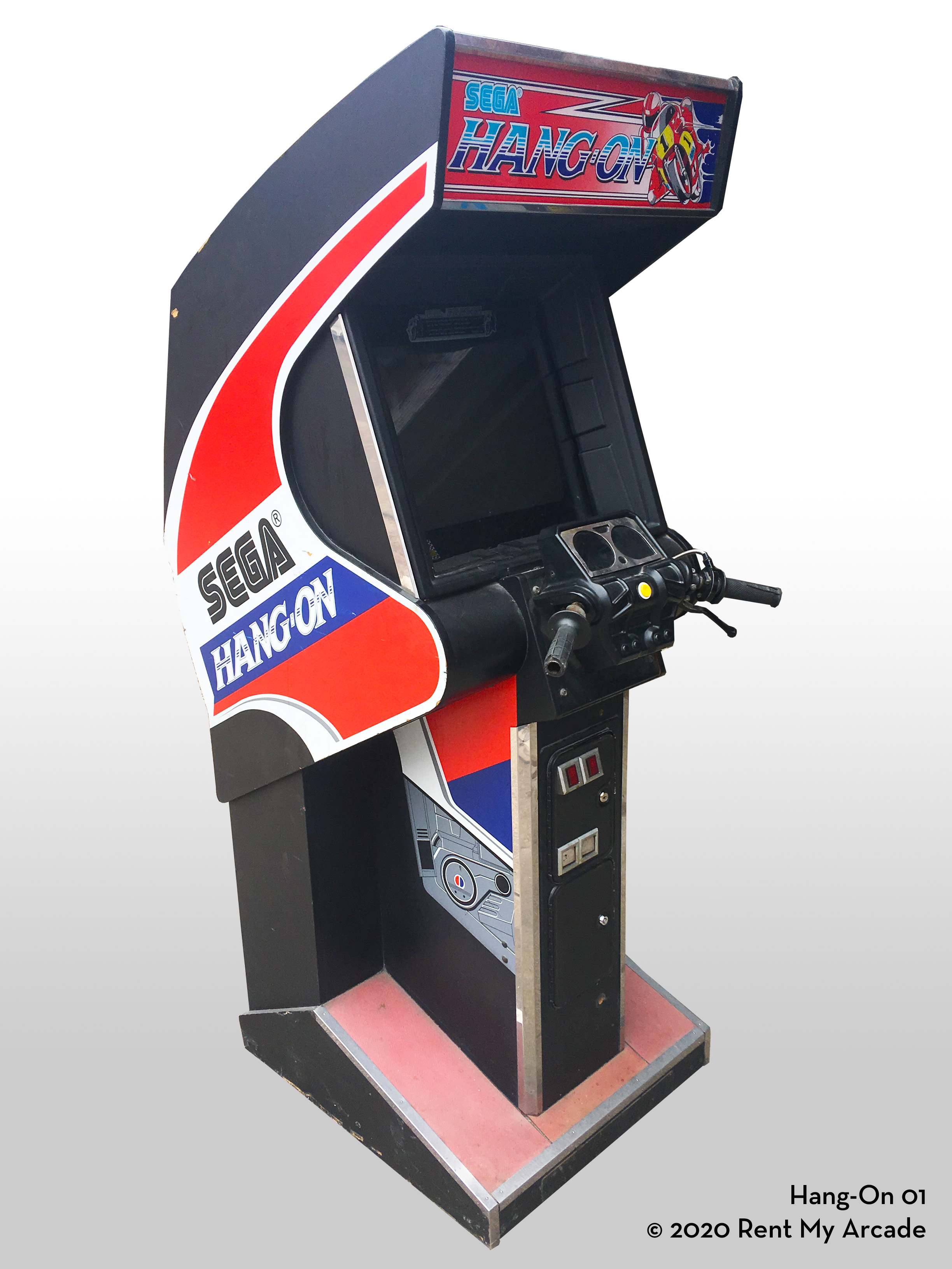 "Hang-On" is a first of its kind in the world, a motorcycle simulator game. Completely new and different from any conventional machine, it features both the realism that one experiences when riding a "real" motorcycle and the maximum in game enjoyment that only comes when you are competing in a hotly contested race. For that once in a lifetime thrill, hop on the "Hang-On" and roar away.
