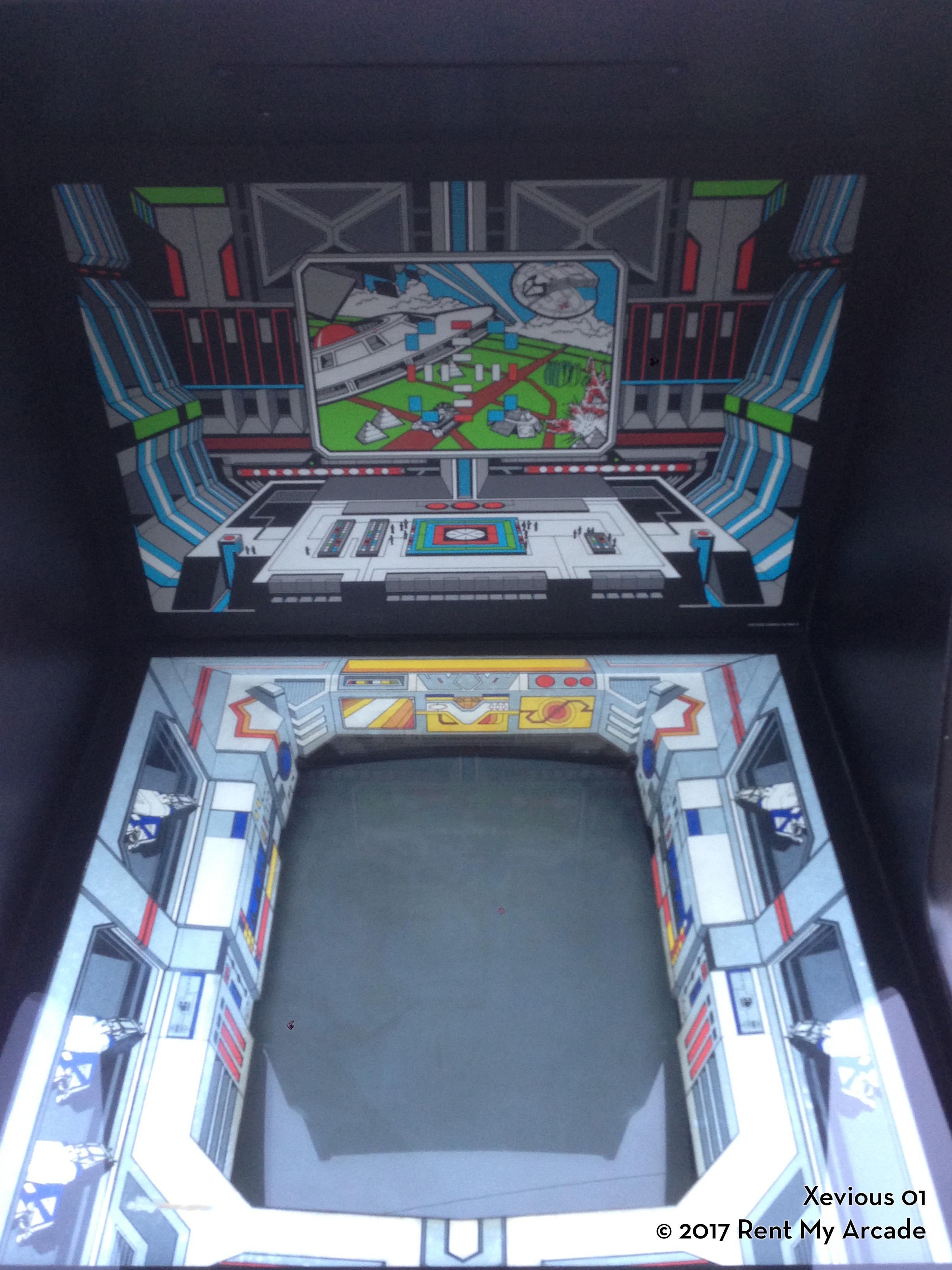 The Xevious people mount a fierce attack in the air and have already secured certain locations on Earth, so the player is bombarded both from air and land. Flying a search and destroy mission, the player cruises over the scrolling landscape, bombing the Xevious ground entrenchments by centering his bombsight over each and zapping the air targets that come into range.